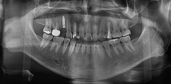 等到有天吃芭樂時,聽到「喀」一聲,就覺得不妙,跟老婆講的時候還被臭罵一頓…最後老婆帶我去給郭德樑醫師檢查牙齒,果不其然,根管治療的那顆牙齒被我咬斷了!因為牙根已經斷裂,郭醫師建議我拔除牙齒。